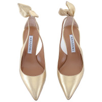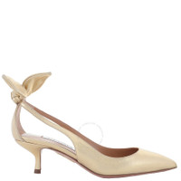 Aquazzura Ladies Heels. SKU: DENMIDP2-SMD-PLATINO. Color: Gold. Aquazzura Bow Tie 50 Leather Pumps. These leather pumps feature a metallic finish, a pointed toe, elegant bow and cut-out detailing, a branded leather insole, and a 50mm kitten heel. 100% Leather. Made in Italy. Please visit the brand website for sizing information. INFORMATION Brand: Aquazzura Model: DENMIDP2-SMD-PLATINO Gender: Womens DETAILS Category: Heels Shoe Style: Kitten Heels Shoe Style: Kitten Heels Color: Yellow Shoe Vamp Style: Slip-on Upper Material: Leather Sole Material: Leather Heel Size: 50 mm ADDITIONAL INFO Jomashop Sku: -DENMIDP2SMDPLATINO Department: Shoes