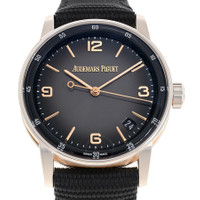 Rose gold-tone 18kt rose gold case with a black band. Fixed 18kt white gold bezel. Grey dial with rose gold-tone hands and Arabic numeral hour markers. Minute markers around the outer rim. Dial Type: Analog. Date display between 4 and 5 o'clock position. Audemars Piguet Calibre 4302 Automatic movement, containing 32 Jewels, bitting at 28800 vph, and has a power reserve of approximately 70 hours. Scratch resistant sapphire crystal. Transparent see through case back. Round case shape, case size: 41 mm, case thickness: 10.7 mm. Buckle clasp. Water resistant at 30 meters / 100 feet. Functions: date, hour, minute, second. Additional Info: original box, manual (complete accessories). Code 11.59 Series. Luxury watch style. Watch label: Swiss Made. Audemars Piguet Code 11.59 Automatic Grey Dial Men's Watch 15210CR.OO.A002KB.01. CASE Case Size: 41 Case Thickness: 10.7 mm Case Material: 18kt Rose Gold Case Shape: Round Case Back: Transparent See Through BAND Band Material: Cloth Band Type: Strap Band Color: Black Clasp: Buckle DIAL Dial Color: Grey Type: Analog Crystal: Scratch Resistant Sapphire Hands: Rose Gold-tone Dial Markers: Arabic Numeral Second Markers: Minute Markers around the outer rim Bezel: Fixed Bezel Material: 18kt White Gold INFORMATION Brand: Audemars Piguet Series: Code 11.59 Collection Name: Code 11.59 Gender: Mens Model: 15210CR.OO.A002KB.01 Watch Label: Swiss Made Movement: Automatic Engine: Audemars Piguet Calibre 4302 Power Reserve: 70 hours FEATURES Water Resistance: 30 meters / 100 feet Calendar: Date display between 4 and 5 o'clock position Functions: Date, Hour, Minute, Second Watch Features: Gold, Analog ADDITIONAL INFO Watch Style: Luxury Warranty: 2 Year Jomashop Warranty Additional Info: Original Box, Manual (Complete Accessories) Jomashop Sku: AP15210CROOA002KB01 Department: Watches Category: Watches