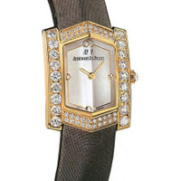 18 kt yellow gold case with a brown satin bracelet. Fixed bezel set with 58 diamonds. Mother of pearl dial with gold-tone hands. Diamonds mark the 3, 6, 9 and 12 o'clock positions. Dial Type: Analog. Quartz movement. Scratch resistant sapphire crystal. Pull / push crown. Solid case back. Case diameter: 21 x 25 mm. Unique case shape. 18 kt gold tang clasp. Functions: hour, minute. Luxury watch style. Watch label: Swiss Made. Audemars Piguet Facettes Diamond 18 kt Yellow Gold Ladies Watch 67491BA.ZZ.A080SU.01. GENERAL Color: Brown / Gold / Mother of pearl / Yellow INFORMATION Brand: Audemars Piguet Series: Facettes Collection Name: Facettes Gender: Womens Model: 67491BA.ZZ.A080SU.01 Watch Label: Swiss Made Movement: Quartz CASE Case Size: 25 mm x 21 mm Case Material: 18kt Yellow Gold Case Shape: Unique Case Back: Solid BAND Band Material: Satin Band Type: Strap Band Color: Brown Clasp: 18 kt gold tang DIAL Dial Color: Mother of Pearl Type: Analog Crystal: Scratch Resistant Sapphire Hands: Gold-tone Dial Markers: Diamond Second Markers: Diamonds mark the 3, 6, 9 and 12 o'clock positions Bezel: Fixed set with 58 diamonds Crown: Pull / Push FEATURES Functions: Hour, Minute Watch Features: Diamond, Gold, Analog ADDITIONAL INFO Watch Style: Luxury Warranty: 2 Year Jomashop Warranty Jomashop Sku: AP67491BAZZA080SU01 Item Variation: 67491BA ZZ A080SU 01, 67491BA-ZZ-A080SU-01, 67491BAZZA080SU01 Department: Watches Category: Watches