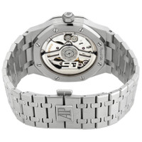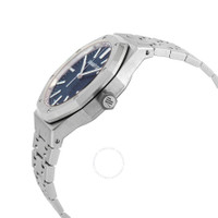 Silver-tone stainless steel case and bracelet. Fixed silver-tone stainless steel bezel. Blue dial with silver-tone hands and index hour markers. Minute markers around the outer rim. Dial Type: Analog. Luminescent hands and markers. Date display at the 3 o'clock position. Audemars Piguet Calibre 4302 Automatic movement, containing 32 Jewels, bitting at 28800 vph, and has a power reserve of approximately 70 hours. Scratch resistant sapphire crystal. Screw down crown. Transparent see through case back. Octagon case shape, case size: 41 mm, case thickness: 10.5 mm. Deployment with push button release clasp. Water resistant at 50 meters / 165 feet. Functions: date, hour, minute, second. Additional Info: original box, international warranty card, manual (complete accessories). Royal Oak "50th Anniversary" Series. Luxury watch style. Watch label: Swiss Made. Audemars Piguet Royal Oak "50th Anniversary" Automatic Blue Dial Men's Watch 15510ST.OO.1320ST.01. INFORMATION Brand: Audemars Piguet Series: Royal Oak "50Th Anniversary" Collection Name: Royal Oak "50th Anniversary" Gender: Mens Model: 15510ST.OO.1320ST.01 Watch Label: Swiss Made Movement: Automatic Engine: Audemars Piguet Calibre 4302 Power Reserve: 70 hours CASE Case Size: 41 mm Case Thickness: 10.5 mm Case Material: Stainless Steel Case Shape: Octagon Case Back: Transparent See Through BAND Band Material: Stainless Steel Band Type: Bracelet Band Color: Silver-tone Clasp: Deployment with Push Button Release DIAL Dial Color: Blue Type: Analog Crystal: Scratch Resistant Sapphire Hands: Silver-tone Dial Markers: Index Second Markers: Minute Markers around the outer rim Luminiscence: Hands and Markers Bezel: Fixed Bezel Color: Silver-tone Bezel Material: Stainless Steel Crown: Screw Down FEATURES Water Resistance: 50 meters / 165 feet Calendar: Date display at the 3 o'clock position Functions: Date, Hour, Minute, Second Watch Features: Stainless Steel, Analog ADDITIONAL INFO Watch Style: Luxury Warranty: 2 Year Jomashop Warranty Additional Info: Original Box, International Warranty Card, Manual (Complete Accessories) Jomashop Sku: AP15510STOO1320ST01 Department: Watches Category: Watches