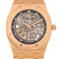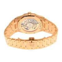 Rose gold-tone 18kt rose gold case and bracelet. Fixed rose gold-tone 18kt rose gold bezel. Transparent dial with rose gold-tone hands and index hour markers. Minute markers around the outer rim. Dial Type: Analog. Luminescent hands and markers. Audemars Piguet Calibre 7124 automatic movement. Scratch resistant sapphire crystal. Transparent see through case back. Round case shape, case size: 39 mm, case thickness: 8.1 mm. Deployment with push button release clasp. Water resistant at 50 meters / 165 feet. Functions: hour, minute. Additional Info: original box, manual (complete accessories). Royal Oak Series. Luxury watch style. Watch label: Swiss Made. Audemars Piguet Royal Oak Automatic Men's Watch 16204OR.OO.1240OR.01. CASE Case Size: 39 Case Thickness: 8.1 mm Case Material: 18kt Rose Gold Case Shape: Round Case Back: Transparent See Through BAND Band Material: 18kt Rose Gold Band Type: Bracelet Band Color: Rose Gold-tone Clasp: Deployment with Push Button Release DIAL Dial Color: Transparent Type: Analog Crystal: Scratch Resistant Sapphire Hands: Rose Gold-tone Dial Markers: Index Second Markers: Minute Markers around the outer rim Luminiscence: Hands and Markers Bezel: Fixed Bezel Color: Rose Gold-tone Bezel Material: 18kt Rose Gold INFORMATION Brand: Audemars Piguet Series: Royal Oak Collection Name: Royal Oak Gender: Mens Model: 16204OR.OO.1240OR.01 Watch Label: Swiss Made Movement: Automatic Engine: Audemars Piguet Calibre 7124 FEATURES Water Resistance: 50 meters / 165 feet Functions: Hour, Minute Watch Features: Gold, Analog ADDITIONAL INFO Watch Style: Luxury Warranty: 2 Year Jomashop Warranty Additional Info: Original Box, Manual (Complete Accessories) Jomashop Sku: AP16204OROO1240OR01 Department: Watches Category: Watches