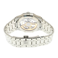 Silver-tone stainless steel case and bracelet. Fixed silver-tone stainless steel bezel. Black dial with silver-tone hands and index hour markers. Minute markers around the outer rim. Dial Type: Analog. Luminescent hands and markers. Date display at the 3 o'clock position. Audemars Piguet Calibre 4302 Automatic movement, containing 32 Jewels, bitting at 28800 vph, and has a power reserve of approximately 70 hours. Scratch resistant sapphire crystal. Screw down crown. Transparent see through case back. Round case shape, case size: 41 mm, case thickness: 10.5 mm. Fold over clasp with a safety release. Water resistant at 50 meters / 165 feet. Functions: date, hour, minute, second. Additional Info: original box, international warranty card, manual (complete accessories). Royal Oak Series. Luxury watch style. Watch label: Swiss Made. Audemars Piguet Royal Oak Automatic Black Dial Men's Watch 15510ST.OO.1320ST.07. CASE Case Size: 41 Case Thickness: 10.5 mm Case Material: Stainless Steel Case Shape: Round Case Back: Transparent See Through BAND Band Material: Stainless Steel Band Type: Bracelet Band Color: Silver-tone Clasp: Fold Over with Safety Release DIAL Dial Color: Black Type: Analog Crystal: Scratch Resistant Sapphire Hands: Silver-tone Dial Markers: Index Second Markers: Minute Markers around the outer rim Luminiscence: Hands and Markers Bezel: Fixed Bezel Color: Silver-tone Bezel Material: Stainless Steel Crown: Screw Down INFORMATION Brand: Audemars Piguet Series: Royal Oak Collection Name: Royal Oak Gender: Mens Model: 15510ST.OO.1320ST.07 Watch Label: Swiss Made Movement: Automatic Engine: Audemars Piguet Calibre 4302 Power Reserve: 70 hours FEATURES Water Resistance: 50 meters / 165 feet Calendar: Date display at the 3 o'clock position Functions: Date, Hour, Minute, Second Watch Features: Stainless Steel, Analog ADDITIONAL INFO Watch Style: Luxury Warranty: 2 Year Jomashop Warranty Additional Info: Original Box, Manual (Complete Accessories) Jomashop Sku: AP15510STOO1320ST07 Department: Watches Category: Watches