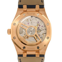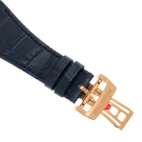 Rose gold-tone 18kt rose gold case with a blue alligator band. Fixed rose gold-tone 18kt rose gold bezel. Blue dial with rose gold-tone hands and index hour markers. Minute markers around the outer rim. Dial Type: Analog. Luminescent hands and markers. Date display at the 3 o'clock position. Audemars Piguet Calibre 4302 Automatic movement, containing 32 Jewels, bitting at 28800 vph, and has a power reserve of approximately 70 hours. Scratch resistant sapphire crystal. Screw down crown. Transparent see through case back. Round case shape, case size: 41 mm, case thickness: 10.5 mm. Fold over clasp with a safety release. Water resistant at 50 meters / 165 feet. Functions: date, hour, minute, second. Additional Info: original box, manual (complete accessories). Royal Oak Series. Luxury watch style. Watch label: Swiss Made. Audemars Piguet Royal Oak Automatic Blue Dial Men's Watch 15510OR.OO.D315CR.02. CASE Case Size: 41 Case Thickness: 10.5 mm Case Material: 18kt Rose Gold Case Shape: Round Case Back: Transparent See Through BAND Band Material: Alligator Band Type: Strap Band Color: Blue Clasp: Fold Over with Safety Release DIAL Dial Color: Blue Type: Analog Crystal: Scratch Resistant Sapphire Hands: Rose Gold-tone Dial Markers: Index Second Markers: Minute Markers around the outer rim Luminiscence: Hands and Markers Bezel: Fixed Bezel Color: Rose Gold-tone Bezel Material: 18kt Rose Gold Crown: Screw Down INFORMATION Brand: Audemars Piguet Series: Royal Oak Collection Name: Royal Oak Gender: Mens Model: 15510OR.OO.D315CR.02 Watch Label: Swiss Made Movement: Automatic Engine: Audemars Piguet Calibre 4302 Power Reserve: 70 hours FEATURES Water Resistance: 50 meters / 165 feet Calendar: Date display at the 3 o'clock position Functions: Date, Hour, Minute, Second Watch Features: Gold, Analog, Alligator Leather ADDITIONAL INFO Watch Style: Luxury Warranty: 2 Year Jomashop Warranty Additional Info: Original Box, Manual (Complete Accessories) Jomashop Sku: AP15510OROOD315CR02 Department: Watches Category: Watches