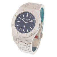 Silver-tone stainless steel case with a silver-tone brushed stainless steel bracelet. Fixed silver-tone stainless steel bezel. Blue grande tapisserie dial with silver-tone hands and stick hour markers. Minute markers around the outer rim. Dial Type: Analog. Luminescent hands and markers. Date display at the 3 o'clock position. Audemars Piguet Calibre 2121 Automatic movement, containing 38 Jewels, composed of 247 parts, bitting at 19800 vph, and has a power reserve of approximately 40 hours. Scratch resistant sapphire crystal. Screw down crown. Skeleton case back. Octagon case shape, case size: 39 mm, case thickness: 8.1 mm. Deployment with push button release clasp. Water resistant at 50 meters / 165 feet. Functions: date, hour, minute. Royal Oak Series. Luxury watch style. Watch label: Swiss Made. Item Variations: 15202ST OO 1240ST 01, 15202ST-OO-1240ST-01, 15202STOO1240ST01. Audemars Piguet Royal Oak Automatic Blue Dial Stainless Steel Men's Watch 15202ST.OO.1240ST.01. GENERAL Color: Blue / Skeleton INFORMATION Brand: Audemars Piguet Series: Royal Oak Collection Name: Royal Oak Gender: Mens Model: 15202ST.OO.1240ST.01 Watch Label: Swiss Made Movement: Automatic Engine: Audemars Piguet Calibre 2121 Power Reserve: 40 hours CASE Case Size: 39 mm Case Thickness: 8.1 mm Case Material: Stainless Steel Case Shape: Octagon Case Back: Skeleton BAND Band Material: Brushed Stainless Steel Band Type: Bracelet Band Color: Silver-tone Clasp: Deployment with Push Button Release DIAL Dial Color: Blue Grande Tapisserie Type: Analog Crystal: Scratch Resistant Sapphire Hands: Silver-tone Dial Markers: Stick Second Markers: Minute Markers around the outer rim Luminiscence: Hands and Markers Bezel: Fixed Bezel Color: Silver-tone Bezel Material: Stainless Steel Crown: Screw Down FEATURES Water Resistance: 50 meters / 165 feet Calendar: Date display at the 3 o'clock position Functions: Date, Hour, Minute Watch Features: Stainless Steel, Analog ADDITIONAL INFO Watch Style: Luxury Warranty: 2 Year Jomashop Warranty Jomashop Sku: AP15202STOO1240ST01 Item Variation: 15202ST OO 1240ST 01, 15202ST-OO-1240ST-01, 15202STOO1240ST01 Department: Watches Category: Watches