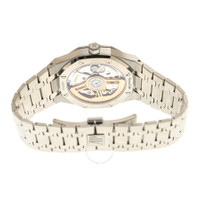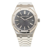 Silver-tone stainless steel case and bracelet. Fixed silver-tone stainless steel bezel. Grey dial with silver-tone hands and index hour markers. Minute markers around the outer rim. Dial Type: Analog. Luminescent hands and markers. Date display at the 3 o'clock position. Audemars Piguet Calibre 4302 Automatic movement, containing 32 Jewels, bitting at 28800 vph, and has a power reserve of approximately 70 hours. Scratch resistant sapphire crystal. Screw down crown. Transparent see through case back. Round case shape, case size: 41 mm, case thickness: 10.5 mm. Fold over clasp with a safety release. Water resistant at 50 meters / 165 feet. Functions: date, hour, minute, second. Additional Info: original box, manual (complete accessories). Royal Oak Series. Luxury watch style. Watch label: Swiss Made. Audemars Piguet Royal Oak Automatic Grey Dial Men's Watch 15510ST.OO.1320ST.10. CASE Case Size: 41 Case Thickness: 10.5 mm Case Material: Stainless Steel Case Shape: Round Case Back: Transparent See Through BAND Band Material: Stainless Steel Band Type: Bracelet Band Color: Silver-tone Clasp: Fold Over with Safety Release DIAL Dial Color: Grey Type: Analog Crystal: Scratch Resistant Sapphire Hands: Silver-tone Dial Markers: Index Second Markers: Minute Markers around the outer rim Luminiscence: Hands and Markers Bezel: Fixed Bezel Color: Silver-tone Bezel Material: Stainless Steel Crown: Screw Down INFORMATION Brand: Audemars Piguet Series: Royal Oak Collection Name: Royal Oak Gender: Mens Model: 15510ST.OO.1320ST.10 Watch Label: Swiss Made Movement: Automatic Engine: Audemars Piguet Calibre 4302 Power Reserve: 70 hours FEATURES Water Resistance: 50 meters / 165 feet Calendar: Date display at the 3 o'clock position Functions: Date, Hour, Minute, Second Watch Features: Stainless Steel, Analog ADDITIONAL INFO Watch Style: Luxury Warranty: 2 Year Jomashop Warranty Additional Info: Original Box, Manual (Complete Accessories) Jomashop Sku: AP15510STOO1320ST10 Department: Watches Category: Watches