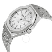 Stainless steel case with a stainless steel bracelet. Fixed stainless steel bezel. Silver (Grande Tapestry pattern) dial with luminous white gold hands and white gold index hour markers. Minute markers around the outer rim. Dial Type: Analog. Luminescent hands and markers. Date display at the 3 o'clock position. Automatic movement with a 60-hour power reserve. Scratch resistant sapphire crystal. Pull / push crown. Transparent case back. Case diameter: 41.9 mm. Case thickness: 9.80 mm. Octagonal case shape. Band width: 20.3 mm. Band length: 8 inches. Deployment clasp. Water resistant at 50 meters / 165 feet. Functions: date, hour, minute, second. Luxury watch style. Watch label: Swiss Made. Audemars Piguet Royal Oak Silver Dial Stainless Steel Automatic Men's Watch 15400ST.OO.1220ST.02. GENERAL Color: Silver CASE Case Size: 41.9 mm Case Thickness: 9.8 mm Case Material: Stainless Steel Case Shape: Octagon Case Back: Transparent BAND Band Material: Stainless Steel Band Type: Bracelet Band Color: Silver-tone Band Length: 8 inches Band Width: 20.3 mm Clasp: Deployment DIAL Dial Color: Silver with Grande Tapestry pattern Type: Analog Crystal: Scratch Resistant Sapphire Hands: Luminous White Gold Dial Markers: White Gold Index Second Markers: Minute Markers around the outer rim Luminiscence: Hands and Markers Bezel: Fixed Bezel Color: Silver-tone Bezel Material: Stainless Steel Crown: Pull / Push INFORMATION Brand: Audemars Piguet Series: Royal Oak Collection Name: Royal Oak Gender: Mens Model: 15400ST.OO.1220ST.02 Watch Label: Swiss Made Movement: Automatic Engine: Audemars Piguet Calibre 3120 Power Reserve: 60 hours FEATURES Water Resistance: 50 meters / 165 feet Calendar: Date display at the 3 o'clock position Functions: Date, Hour, Minute, Second Watch Features: Stainless Steel, Gold ADDITIONAL INFO Watch Style: Luxury Warranty: 2 Year Jomashop Warranty UPC Code: 722512340831 Jomashop Sku: AP15400STOO1220ST02 Item Variation: 15400ST OO 1220ST 02, 15400ST-OO-1220ST-02, 15400STOO1220ST02 Department: Watches Category: Watches