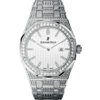 18kt white gold case with a white gold-tone 18kt white gold and diamond set bracelet. Fixed 18kt white gold bezel with diamond set. Silver grande tapisserie dial with silver-tone hands and diamond hour markers. Minute markers around the outer rim. Dial Type: Analog. Luminescent hands. Date display at the 3 o'clock position. Audemars Piguet Calibre 2713 quartz movement. Scratch resistant sapphire crystal. Solid case back. Octagon case shape, case size: 33 mm, case thickness: 7 mm. Deployment with push button release clasp. Water resistant at 50 meters / 165 feet. Functions: date, hour, minute. Royal Oak Lady Series. Luxury watch style. Watch label: Swiss Made. Item Variations: 67652BC ZZ 1262BC 01, 67652BC-ZZ-1262BC-01, 67652BCZZ1262BC01. Audemars Piguet Royal Oak Lady Diamond Silver Dial White Gold Ladies Watch 67652BC.ZZ.1262BC.01. GENERAL Color: Gold / Silver / White INFORMATION Brand: Audemars Piguet Series: Royal Oak Lady Collection Name: Royal Oak Lady Gender: Womens Model: 67652BC.ZZ.1262BC.01 Watch Label: Swiss Made Movement: Quartz Engine: Audemars Piguet Calibre 2713 CASE Case Size: 33 mm Case Thickness: 7 mm Case Material: 18kt White Gold Case Shape: Octagon Case Back: Solid BAND Band Material: 18kt White Gold and Diamond Set Band Type: Bracelet Band Color: White Gold-tone Clasp: Deployment with Push Button Release DIAL Dial Color: Silver Grande Tapisserie Type: Analog Crystal: Scratch Resistant Sapphire Hands: Silver-tone Dial Markers: Diamond Second Markers: Minute Markers around the outer rim Sub Dials: Hands Luminiscence: Hands Bezel: Fixed Bezel Color: 18kt White Gold Bezel Material: Diamond Set FEATURES Water Resistance: 50 meters / 165 feet Calendar: Date display at the 3 o'clock position Functions: Date, Hour, Minute Watch Features: Diamond, Gold, Analog ADDITIONAL INFO Watch Style: Luxury Warranty: 2 Year Jomashop Warranty Jomashop Sku: AP67652BCZZ1262BC01 Item Variation: 67652BC ZZ 1262BC 01, 67652BC-ZZ-1262BC-01, 67652BCZZ1262BC01 Department: Watches Category: Watches