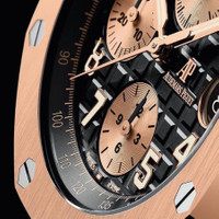 18kt pink gold case with a 18kt pink gold bracelet. 8 screws fixed 18kt pink gold bezel. Black dial with rose gold-tone hands and Arabic numeral hour markers. Tachymeter scale around the outer rim. Dial Type: Analog. Luminescent hands and markers. Date display at the 3 o'clock position. Chronograph - three sub-dials displaying: 60 second, 30 minute and 12 hour. Audemars Piguet Calibre 3126/3840 Automatic movement, based upon Audemars Piguet 3120, containing 59 Jewels, composed of 365 parts, bitting at 21600 vph, and has a power reserve of approximately 50 hours. Scratch resistant sapphire crystal. Screw down crown. Transparent case back. Octagon case shape, case size: 42 mm, case thickness: 14.6 mm. Folding clasp. Water resistant at 100 meters / 330 feet. Functions: chronograph, date, hour, minute, second. Royal Oak Offshore Series. Luxury watch style. Watch label: Swiss Made. Audemars Piguet Royal Oak Offshore Chronograph Automatic Black Dial Men's Watch 26470OR.OO.1000OR.03. CASE Case Size: 42 Case Thickness: 14.6 mm Case Material: 18kt Pink Gold Case Shape: Octagon Case Back: Transparent BAND Band Material: 18kt Pink Gold Band Type: Bracelet Clasp: Folding DIAL Dial Color: Black Type: Analog Crystal: Scratch Resistant Sapphire Hands: Rose Gold-tone Dial Markers: Arabic Numeral Second Markers: Tachymeter Scale around the outer rim Sub Dials: Three - 60 Second, 30 Minute and 12 Hour Luminiscence: Hands and Markers Bezel: 8 Screws Fixed Bezel Material: 18kt Pink Gold Crown: Screw Down INFORMATION Brand: Audemars Piguet Series: Royal Oak Offshore Collection Name: Royal Oak Offshore Gender: Mens Model: 26470OR.OO.1000OR.03 Watch Label: Swiss Made Movement: Automatic Engine: Audemars Piguet Calibre 3126/3840 Power Reserve: 50 hours FEATURES Water Resistance: 100 meters / 330 feet Calendar: Date display at the 3 o'clock position Functions: Chronograph, Date, Hour, Minute, Second Watch Features: Chronograph, Gold, Analog ADDITIONAL INFO Watch Style: Luxury Warranty: 2 Year Jomashop Warranty Jomashop Sku: AP26470OROO1000OR03 Department: Watches Category: Watches
