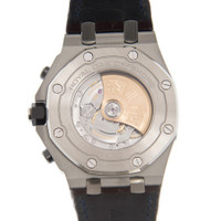 Silver-tone stainless steel case with a brown hornback alligator leather strap. 8 screws fixed stainless steel bezel. Brown dial with silver-tone hands and Arabic hour markers. Minute markers. tachymeter markings around the outer rim. Dial Type: Analog. Luminescent hands and markers. Date display at the 3 o'clock position. Chronograph - three sub-dials displaying: 60 second, 30 minute and 12 hour. Audemars Piguet Calibre 3126/3840 Automatic movement, based upon Audemars Piguet 3120, containing 59 Jewels, composed of 365 parts, bitting at 21600 vph, and has a power reserve of approximately 50 hours. Scratch resistant sapphire crystal. Pull / push crown. Skeleton case back. Octagon case shape, case size: 42 mm, case thickness: 14.54 mm. Tang clasp. Water resistant at 100 meters / 330 feet. Functions: chronograph, date, hour, minute, small second. Luxury watch style. Watch label: Swiss Made. Audemars Piguet Royal Oak Offshore Chronograph Automatic Brown Dial Men's Watch 26470STOOA099CR01. CASE Case Size: 42 mm Case Thickness: 14.54 mm Case Material: Stainless Steel Case Shape: Octagon Case Back: Skeleton BAND Band Material: Hornback Alligator Leather Band Type: Strap Band Color: Brown Clasp: Tang DIAL Dial Color: Brown Type: Analog Crystal: Scratch Resistant Sapphire Hands: Silver-tone Dial Markers: Arabic Second Markers: Minute Markers. Tachymeter Markings around the outer rim Sub Dials: Three - 60 Second, 30 Minute and 12 Hour Luminiscence: Hands and Markers Bezel: 8 Screws Fixed Bezel Color: Silver-tone Bezel Material: Stainless Steel Crown: Pull / Push INFORMATION Brand: Audemars Piguet Series: Royal Oak Offshore Collection Name: Royal Oak Offshore Gender: Mens Model: 26470ST.OO.A099CR.01 Watch Label: Swiss Made Movement: Automatic Engine: Audemars Piguet Calibre 3126/3840 Power Reserve: 50 hours FEATURES Water Resistance: 100 meters / 330 feet Calendar: Date display at the 3 o'clock position Functions: Chronograph, Date, Hour, Minute, Small Second Watch Features: Analog, Leather, Stainless Steel, Chronograph ADDITIONAL INFO Watch Style: Luxury Warranty: 2 Year Jomashop Warranty Jomashop Sku: AP26470STOOA099CR01 Department: Watches Category: Watches