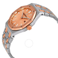 Silver-tone stainless steel case with a two-tone (silver-tone and pink gold-tone) stainless steel and 18kt pink gold bracelet. 8 screws fixed 18kt pink gold bezel. Pink gold dial with silver-tone hands and index hour markers. Dial Type: Analog. Luminescent hands and markers. Date display at the 3 o'clock position. Audemars Piguet Calibre 2713 quartz movement. Scratch resistant sapphire crystal. Solid case back. Octagon case shape, case size: 33 mm, case thickness: 7 mm. Butterfly clasp. Water resistant at 50 meters / 165 feet. Functions: date, hour, minute. Luxury watch style. Watch label: Swiss Made. Audemars Piguet Royal Oak Pink Gold Dial Ladies 18 Carat Pink Gold Watch 67650SR.OO.1261SR.01. INFORMATION Brand: Audemars Piguet Series: Royal Oak Collection Name: Royal Oak Gender: Womens Model: 67650SR.OO.1261SR.01 Watch Label: Swiss Made Movement: Quartz Engine: Audemars Piguet Calibre 2713 CASE Case Size: 33 mm Case Thickness: 7 mm Case Material: Stainless Steel Case Shape: Octagon Case Back: Solid BAND Band Material: Stainless steel and 18kt Pink Gold Band Type: Bracelet Band Color: Two-tone (Silver-tone and Pink Gold-tone) Clasp: Butterfly DIAL Dial Color: Pink Gold Type: Analog Crystal: Scratch Resistant Sapphire Hands: Silver-tone Dial Markers: Index Luminiscence: Hands and Markers Bezel: 8 Screws Fixed Bezel Material: 18kt Pink Gold FEATURES Water Resistance: 50 meters / 165 feet Calendar: Date display at the 3 o'clock position Functions: Date, Hour, Minute Watch Features: Stainless Steel, Gold, Analog ADDITIONAL INFO Watch Style: Luxury Warranty: 2 Year Jomashop Warranty Jomashop Sku: AP67650SROO1261SR01 Department: Watches Category: Watches