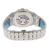 Silver-tone stainless steel case with a silver-tone stainless steel bracelet. 8 screws fixed silver-tone stainless steel bezel. Slate grey skeleton dial with rose gold-tone hands and index hour markers. Dial Type: Analog. Luminescent hands and markers. Audemars Piguet Calibre 3132 Automatic movement, based upon Audemars Piguet AP 3120, containing 38 Jewels, bitting at 21600 vph, and has a power reserve of approximately 45 hours. Scratch resistant sapphire crystal. Screw down crown. Skeleton transparent exhibition see through case back. Octagon case shape, case size: 41 mm, case thickness: 9.9 mm. Fold over with safety release clasp. Water resistant at 50 meters / 165 feet. Functions: hours, minutes, centre seconds. Luxury watch style. Watch label: Swiss Made. Audemars Piguet Royal Oak Slate Grey Skeleton Dial Automatic Men's Watch 15407ST.OO.1220ST.01. CASE Case Size: 41 Case Thickness: 9.9 mm Case Material: Stainless Steel Case Shape: Octagon Case Back: Skeleton Transparent Exhibition See Through BAND Band Material: Stainless Steel Band Type: Bracelet Band Color: Silver-tone Clasp: Fold Over with Safety Release DIAL Dial Color: Slate Grey Skeleton Type: Analog Crystal: Scratch Resistant Sapphire Hands: Rose Gold-tone Dial Markers: Index Luminiscence: Hands and Markers Bezel: 8 Screws Fixed Bezel Color: Silver-tone Bezel Material: Stainless Steel Crown: Screw Down INFORMATION Brand: Audemars Piguet Series: Royal Oak Collection Name: Royal Oak Gender: Mens Model: 15407ST.OO.1220ST.01 Watch Label: Swiss Made Movement: Automatic Engine: Audemars Piguet Calibre 3132 Power Reserve: 45 hours FEATURES Water Resistance: 50 meters / 165 feet Functions: Hours, Minutes, Centre Seconds Watch Features: Stainless Steel, Gold, Analog ADDITIONAL INFO Watch Style: Luxury Warranty: 2 Year Jomashop Warranty Jomashop Sku: AP15407STOO1220ST01 Department: Watches Category: Watches