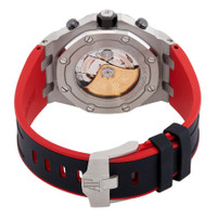Pre-owned Stainless steel case with a black rubber strap. Fixed black ceramic bezel. Black dial with silver-tone hands and Arabic numeral hour markers. Tachymeter around the outer rim. Dial Type: Analog. Luminescent hands. Date display between 4 and 5 o'clock position. Chronograph - three sub-dials displaying: 60 second, 30 minute and 12 hour. Audemars Piguet Calibre 2385 Automatic movement, containing 37 Jewels, composed of 304 parts, bitting at 21600 vph, and has a power reserve of approximately 40 hours. Scratch resistant sapphire crystal. Screw down crown. Solid case back. Octagon case shape, case size: 54 mm x 42 mm, case thickness: 14.5 mm. Band width: 20.3 mm, band length: 8 inches. Pin buckle clasp. Water resistant at 50 meters / 165 feet. Functions: chronograph, column wheel, date, hour, minute, small second. Sport watch style. Watch label: Swiss Made. Audemars Piguet Royal Oak Offshore Chronograph Automatic Men's Watch 26470SO.OO.A002CA.01. GENERAL Preowned Item Condition: Excellent CASE Case Thickness: 14.5 mm Case Material: Stainless Steel Case Shape: Octagon Case Back: Solid BAND Band Material: Rubber Band Type: Strap Band Color: Black Band Width: 20.3 mm Clasp: Pin Buckle DIAL Dial Color: Black Type: Analog Crystal: Scratch Resistant Sapphire Hands: Silver-tone Dial Markers: Arabic Numeral Second Markers: Tachymeter around the outer rim Sub Dials: Three - 60 Second, 30 Minute and 12 Hour Luminiscence: Hands Bezel: Fixed Bezel Color: Black Bezel Material: Ceramic Crown: Screw Down INFORMATION Brand: Audemars Piguet Series: Royal Oak Offshore Collection Name: Royal Oak Offshore Gender: Mens Model: 26470SO.OO.A002CA.01 Watch Label: Swiss Made Movement: Automatic Engine: Audemars Piguet Calibre 2385 Power Reserve: 40 hours FEATURES Water Resistance: 50 meters / 165 feet Calendar: Date display between 4 and 5 o'clock position Functions: Chronograph, Column Wheel, Date, Hour, Minute, Small Second Watch Features: Analog, Ceramic, Rubber, Stainless Steel, Chronograph ADDITIONAL INFO Watch Style: Sport Warranty: 1 Year Jomashop Warranty Jomashop Sku: PRE-P-AP102306 Department: Watches Category: Watches