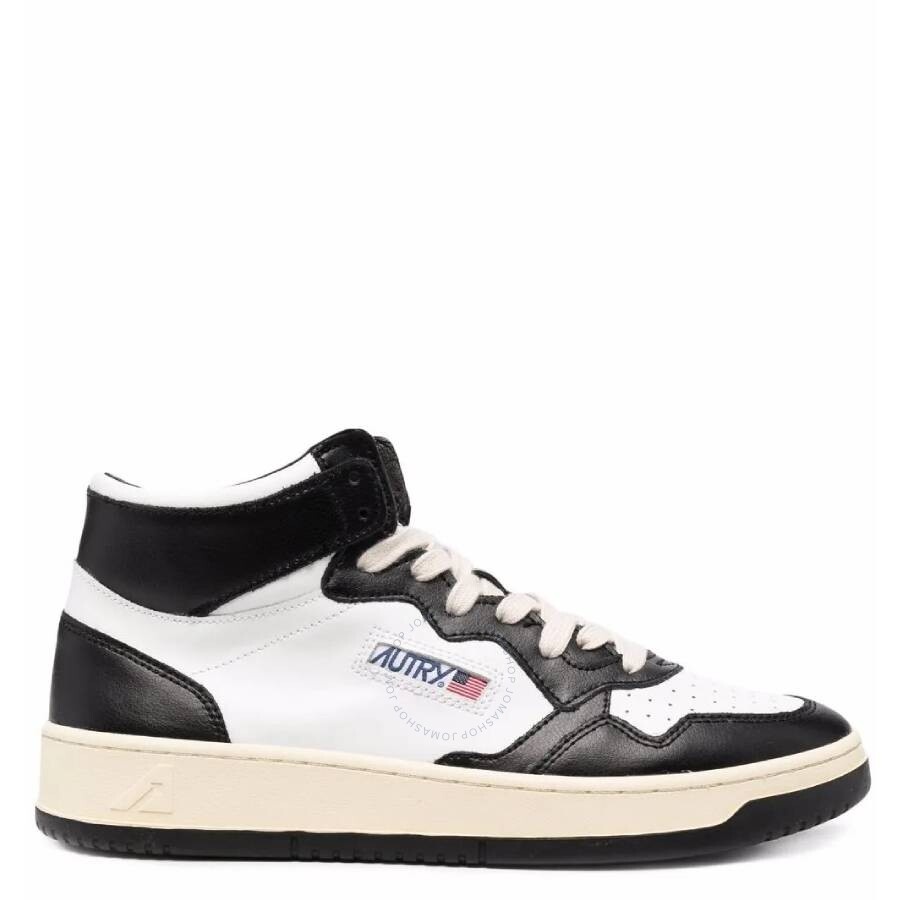 Autry Men's Sneakers. SKU: AUMMWB01-LEAT/LEAT WHT/BLK. Color: Black. Autry Medalist Bicolor High-Top Sneakers. The Medalist high-top sneakers, crafted from soft leather in a color-block motif, feature a perforated toe, lace-up fastening, padded ankle collar, leather and cotton terry lining, a 2 cm leather insole, a rubber sole with a contrasting black tread, and are finished with the Autry logo on the side and a label sewn on the tongue. Upper Material: 100% cow leather. Lining: 40% pigskin; 50% towel; 10% nylon. Please visit the brand website for sizing information. INFORMATION Brand: Autry Model: AUMMWB01-LEAT/LEAT WHT/BLK Gender: Mens DETAILS Category: Sneakers Shoe Style: Low Top Shoe Style: Low Top Color: Black Shoe Vamp Style: Lace-up Upper Material: Leather Sole Material: Rubber ADDITIONAL INFO Jomashop Sku: -MWB01LEATLEATWHTBLK Department: Shoes