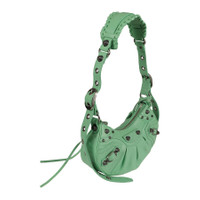 Balenciaga Ladies Shoulder Bag. Le Cagole series. SKU: 6713091VG9Y3823. Color: Green. Size: L: 10.2" x H: 6.3" x W: 2.7". Balenciaga Green Le Cagole XS Shoulder Bag. Arena lambskin. Leather braided shoulder pad. Zipped closure with knotted leather puller. Aged-silver hardware. 1 removable zipped pouch. 1 removable heart mirror. Tone-on-tone Balenciaga logo embossed on mirror. Cotton canvas lining. Made in Italy. GENERAL Size Info: L: 10.2" x H: 6.3" x W: 2.7" Brand Type: Designer Color: Green Collection Name: Le Cagole INFORMATION Brand: Balenciaga Series: Le Cagole Gender: Womens Model: 6713091VG9Y3823 ADDITIONAL INFO Jomashop Sku: Z-L4SHM Department: Bags Category: Shoulder Bag