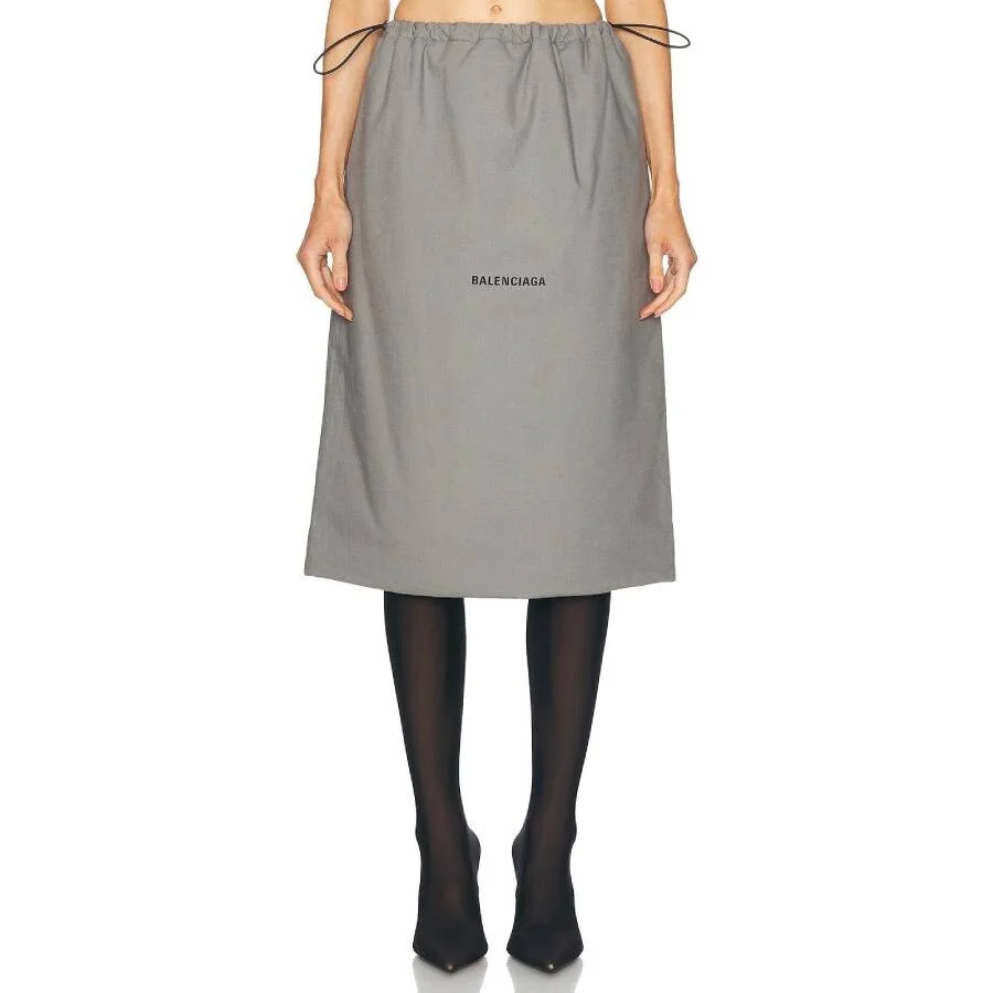 Balenciaga Ladies Bottoms. Fashion category: Skirts. SKU: 809438 TRM13 9243. Balenciaga High Waist Shoe Bag Skirt. This skirt features a high waist, a drawstring waistband, a front logo print, a drawstring hem, and light padding for added structure and comfort. 100% Cotton. Made in Italy. GENERAL Size Info: Small Brand Type: Designer Clothing Size: Ladies Apparel Size: S Color: Grey INFORMATION Brand: Balenciaga Series: __Null__Value__ Gender: Womens Model: 809438 TRM13 9243 DETAILS Category: Bottoms Apparel Type: Skirts Material: Cotton ADDITIONAL INFO UPC Code: 3666620466366 Jomashop Sku: Z-FBLGW Department: Clothing