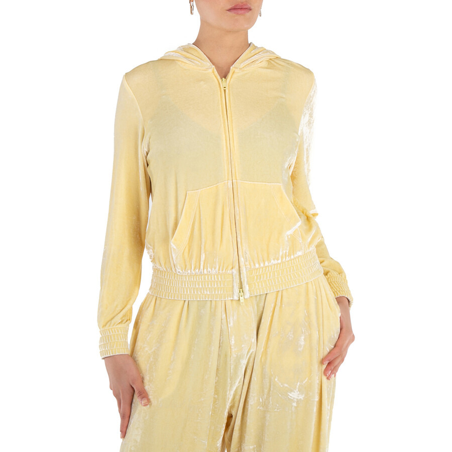 Balenciaga Ladies Tops. Fashion category: Hoodies & Sweatshirts. SKU: 753474 TOVO3 9020. Color: Cream. Balenciaga Ladies Cream BB Paris Zip-Up Hoodie. A cotton blend hoodie featuring velvet effect, a classic hood, front zip fastening, two front pouch pockets, fitted-cuff sleeves, elasticated hem, crystal embellishment and finished with logo print to the rear. GENERAL Color: Cream INFORMATION Brand: Balenciaga Gender: Womens Model: 753474 TOVO3 9020 DETAILS Category: Tops Apparel Type: Hoodies & Sweatshirts ADDITIONAL INFO Jomashop Sku: -753474TOVO39020 Department: Apparel