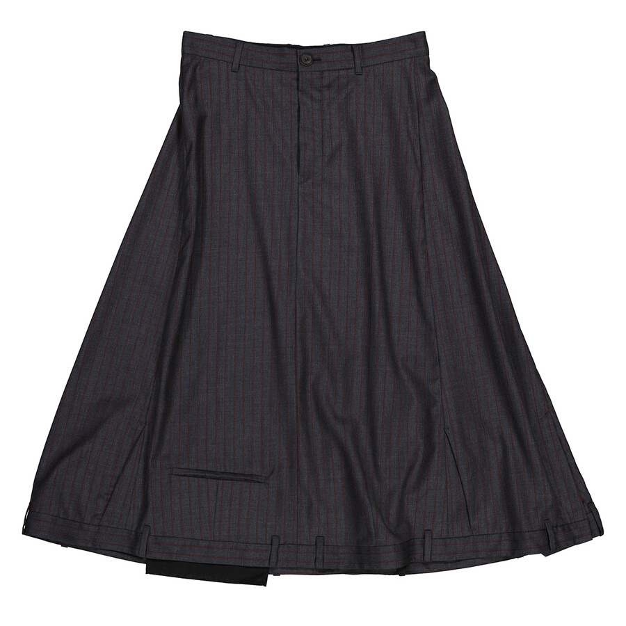 Balenciaga Ladies Bottoms. Fashion category: Skirts. SKU: 768732 TPT05 1360. Color: Grey/Red. Balenciaga Ladies Grey / Red Pinstripe-Pattern Midi Wool Skirt. This wool skirt features a pinstripe pattern, minimalist construction, high waist, front button fastening, belt loops, flared, straight hem, faux pocket detail, and a mid-calf length. Wool 100% Made in Italy. GENERAL Color: Grey/Red INFORMATION Brand: Balenciaga Gender: Womens Model: 768732 TPT05 1360 DETAILS Category: Bottoms Apparel Type: Skirts ADDITIONAL INFO Jomashop Sku: -768732TPT051360 Department: Apparel