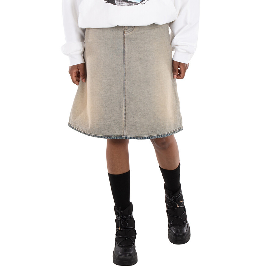 Balenciaga Ladies Bottoms. Fashion category: Skirts. SKU: 773784 TDW15 4209. Balenciaga Ladies Inside Out Denim Short Skirt. A cotton denim short skirt with an A-line silhouette, featuring belt loops, classic five-pocket styling, and a logo patch at the rear. It has a straight hem, a thigh-length cut, is unlined, and includes a concealed fly with button fastening. Cotton 100% Made in Italy. INFORMATION Brand: Balenciaga Gender: Womens Model: 773784 TDW15 4209 DETAILS Category: Bottoms Apparel Type: Skirts Material: Cotton ADDITIONAL INFO Jomashop Sku: -773784TDW154209 Department: Clothing