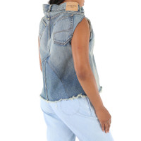 Balenciaga Ladies True Blue Sleeveless Denim Asymmetrical Top