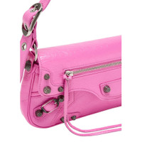Balenciaga Ladies Shoulder Bag. SKU: 771640 2AA6T 5908. Color: Light Pink. Size: H 5.5" x W 11.8" x D 1.7". Balenciaga Le Cagole Leather Shoulder Bag. This shoulder bag is crafted from varnished crushed calfskin and detailed with signature studs, buckles, and knotted pullers on the external zip pockets, adding a distinctive edge. It features a foldover top with a magnetic fastening, a rear zip-fastening pocket for easy access, and an adjustable shoulder strap for versatile wear. The spacious main compartment is lined in cotton canvas and includes a practical patch pocket. 100% Leather. Made in Italy. GENERAL Size Info: H 5.5" x W 11.8" x D 1.7" Brand Type: Designer Color: Light Pink INFORMATION Brand: Balenciaga Gender: Womens Model: 771640 2AA6T 5908 DETAILS Material: Leather Closure: Magnetic Snap ADDITIONAL INFO UPC Code: 3666620412714 Jomashop Sku: Z-SCJG5 Department: Bags Category: Shoulder Bag