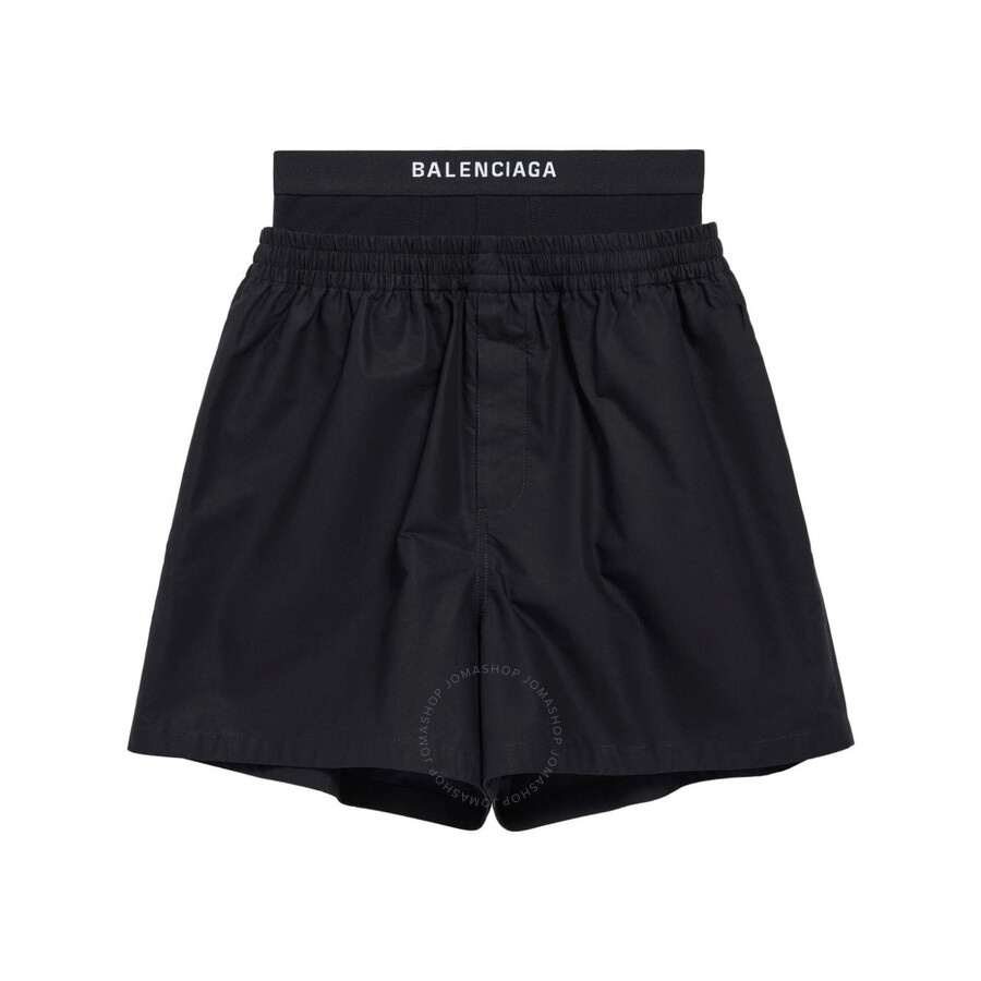 Balenciaga Men's Bottoms. Fashion category: Shorts. SKU: 791054 TNM60 1000. Balenciaga Men's Hybrid Cotton Boxer Shorts. A pair of hybrid cotton boxer shorts with a layered design, featuring an elasticated logo waistband, wide legs, and a thigh-length fit. Cotton 100% Made in Italy. INFORMATION Brand: Balenciaga Gender: Mens Model: 791054 TNM60 1000 DETAILS Category: Bottoms Apparel Type: Shorts Material: Cotton ADDITIONAL INFO Jomashop Sku: -791054TNM601000 Department: Clothing