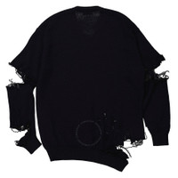 Balenciaga Unisex Tops. Fashion category: Cardigans & Sweaters. SKU: 696091 T1642 0414. Color: Navy W. Balenciaga Ladies Navy Cut-Out Crewneck Knitted Jumper. A wool jumper featuring a fine knit, long sleeves, ribbed cuffs and ribbed hem, a distressed finish, V-neck, oversized fit and finished with an embroidered logo at the chest. Wool 100% Made in Italy. GENERAL Brand Type: Designer Color: Navy W INFORMATION Brand: Balenciaga Gender: Womens Model: 696091 T1642 0414 DETAILS Category: Tops Apparel Type: Cardigans & Sweaters Material: Wool ADDITIONAL INFO Jomashop Sku: -696091T16420414 Department: Clothing