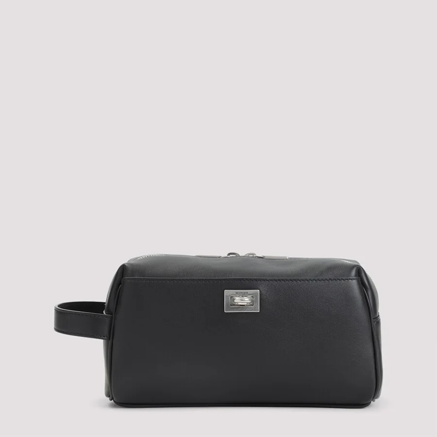 Balenciaga Men's Pouch. SKU: 845590.2AA4U 1000. Color: Black. Size: W:22cm H:12cm D:8cm. Balenciaga Rodeo Toiletry Pouch. Balenciaga Black Leather Rodeo Toiletry Pouch. Pure black leather pouch, top two-ways zipped fastening, front pocket, front silver-tone metallic buckle, side tonal leather strap, one main compartment. GENERAL Size Info: W:22cm H:12cm D:8cm Brand Type: Designer Color: Black INFORMATION Brand: Balenciaga Gender: Mens Model: 845590.2AA4U 1000 ADDITIONAL INFO Jomashop Sku: Z-M92K8 Department: Bags Category: Pouch