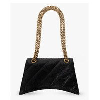Balenciaga Ladies Shoulder Bag. SKU: 716351 210J1 1000. Color: Black. Size: L 9.8" x H 5.9" x W 3.1". Balenciaga Small Crush Chain Shoulder Bag. This chain bag features a distinctive curvilinear base and a versatile aged-gold chain strap that allows for both shoulder and crossbody wear (19.6 inches). It is adorned with the iconic aged-gold B logo hardware and secured with a studded magnetic closure. Thoughtfully designed, the interior offers three compartments, along with one inner zipped pocket and one inner flat pocket for organization. Lined in luxurious Nappa lambskin and expertly crafted in Italy, this bag combines refined craftsmanship with timeless appeal. 100% Leather. Made in Italy. GENERAL Size Info: L 9.8" x H 5.9" x W 3.1" Brand Type: Designer Color: Black INFORMATION Brand: Balenciaga Gender: Womens Model: 716351 210J1 1000 DETAILS Material: Leather Closure: Magnetic Snap DIMENSIONS Size: Small ADDITIONAL INFO UPC Code: 3666620088391 Jomashop Sku: Z-35T6V Department: Bags Category: Shoulder Bag