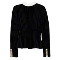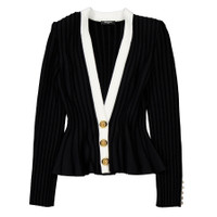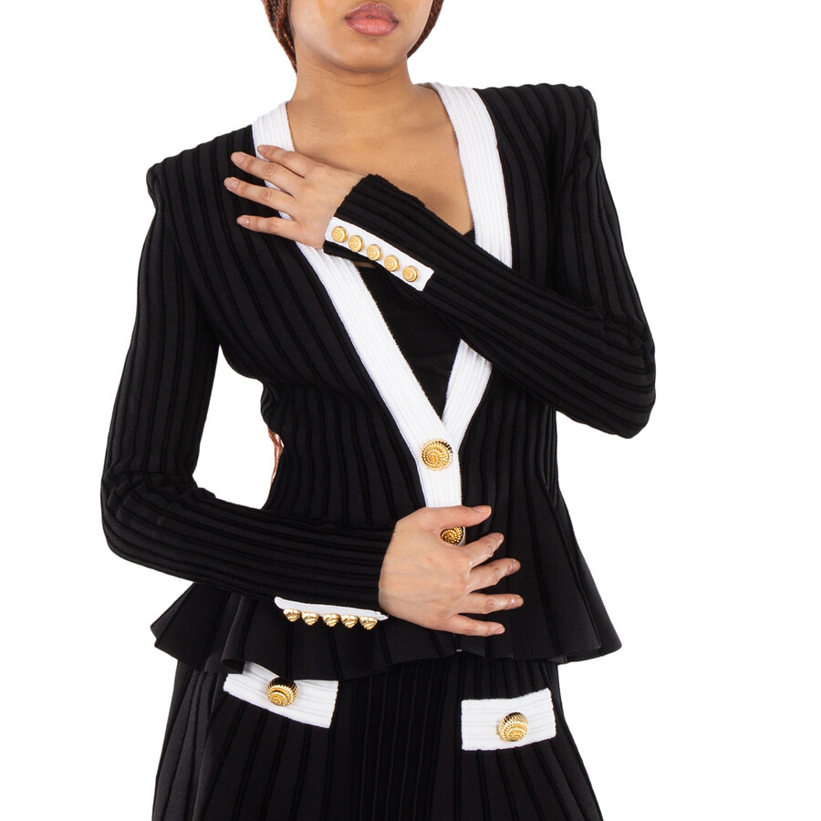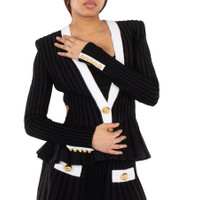 Balmain Ladies Outerwear. Fashion category: Coats & Jackets. SKU: DF0SK397KH63-NOIR/BLANC. Color: Noir/Blanc. Balmain Button-Detailed Curved Hem Jacket. This jacket features raised seam detailing, front press-stud fastening, contrasting trim, and a V-neck, with shoulder pads, long sleeves, and decorative sculpted button detailing. It has a fitted waistline and a curved hem. 63% Viscose, 36% Polyamide, 1% Lyocell. Made in Italy. GENERAL Color: Noir/Blanc INFORMATION Brand: Balmain Gender: Womens Model: DF0SK397KH63-NOIR/BLANC DETAILS Category: Outerwear Apparel Type: Coats & Jackets Material: Polyamide, Viscose ADDITIONAL INFO Jomashop Sku: -0SK397KH63NOIRBLANC Department: Clothing