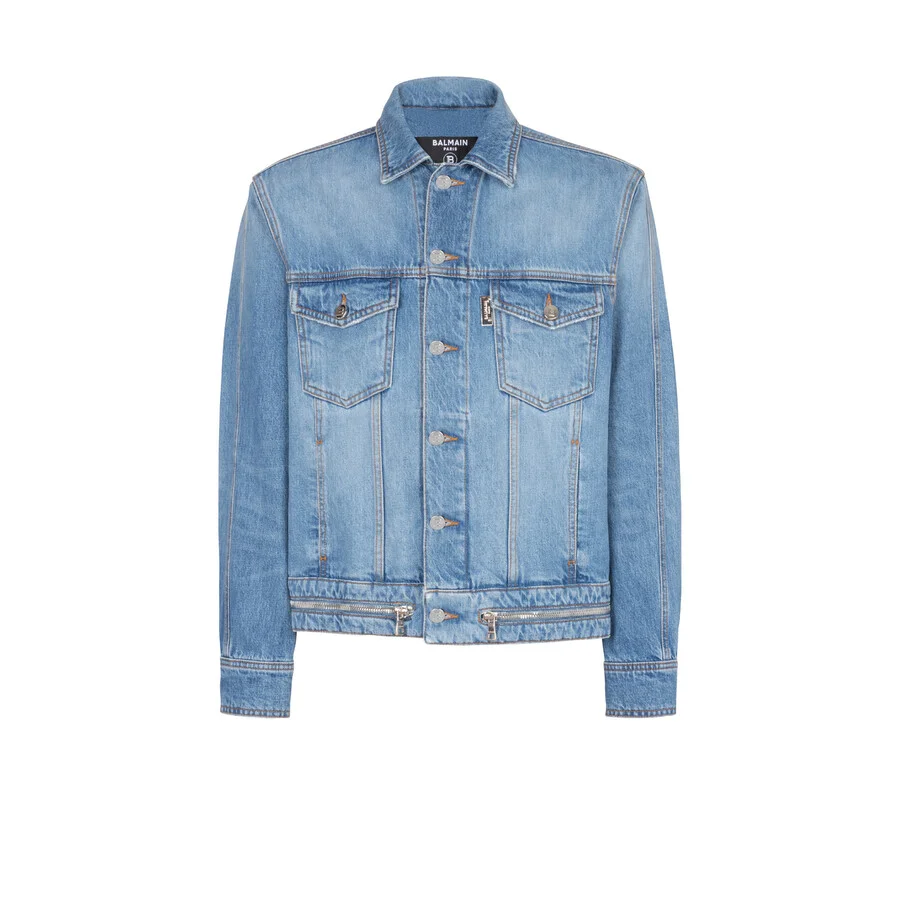 Denim jacket with zip fastening - Classic shirt collar - front fastening with silver Balmain embossed buttons - buttoned cuffs - two flap pockets on the chest - two zipped side pockets - zip around the waist - Relaxed fit - True to size (select your usual size) - The model is wearing a size IT 48 - The model's height is 189 cm - Material: 100 % cotton - Made in Italy GENERAL Brand Type: Designer Color: Bleu Jean INFORMATION Brand: Balmain Gender: Mens Model: AH1TC230DC99-6FF DETAILS Category: Outerwear Apparel Type: Coats & Jackets ADDITIONAL INFO Jomashop Sku: -AH1TC230DC996FF Department: Clothing