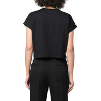Balmain Ladies Tops. Fashion category: T-Shirts & Henleys. SKU: YF1EE005BB01-EAB. Color: Eab Black/White. Balmain Flock Logo Print Cropped T Shirt. This t-shirt features a logo print at the chest, a round neck, short sleeves, a straight hem, and a cropped silhouette. 100% Cotton. GENERAL Brand Type: Designer Color: Eab Noir/Blanc INFORMATION Brand: Balmain Gender: Womens Model: YF1EE005BB01-EAB DETAILS Category: Tops Apparel Type: T-Shirts & Henleys Material: Cotton ADDITIONAL INFO Jomashop Sku: -YF1EE005BB01EAB Department: Clothing