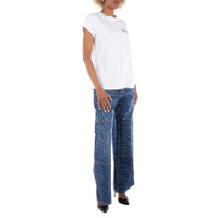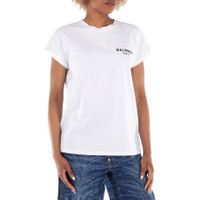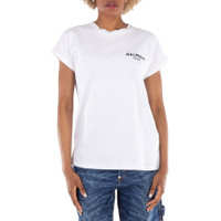 Balmain Ladies Tops. Fashion category: T-Shirts & Henleys. SKU: DF1EF010BB01-BLANC/NOIR. Color: Blanc/Noir. Balmain Flocked Balmain Paris Logo T-Shirt. This cotton t-shirt features a relaxed fit, a round neck with ribbed trim, and short cuffed sleeves. It is finished with a contrasting flocked Balmain Paris logo on the front. 100% cotton. GENERAL Color: Blanc/Noir INFORMATION Brand: Balmain Gender: Womens Model: DF1EF010BB01-BLANC/NOIR DETAILS Category: Tops Apparel Type: T-Shirts & Henleys Material: Cotton ADDITIONAL INFO Jomashop Sku: -1EF010BB01BLANCNOIR Department: Clothing