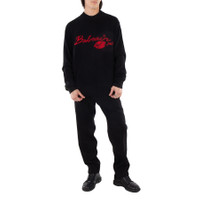 Balmain Men's Tops. Fashion category: Cardigans & Sweaters. SKU: DH0KD010KH32- NOIR/ROUGE. Color: Noir/Rouge. Balmain Kiss Embroidered Wool Jumper. This jumper, crafted from virgin wool in a knitted construction, features a crew neck, straight hem, embroidered lips motif on the chest, and logo lettering for a bold yet refined look. Virgin Wool 100%. GENERAL Brand Type: Designer Color: Noir/Rouge INFORMATION Brand: Balmain Gender: Mens Model: DH0KD010KH32- NOIR/ROUGE DETAILS Category: Tops Apparel Type: Cardigans & Sweaters Material: Wool ADDITIONAL INFO Jomashop Sku: -0KD010KH32NOIRROUGE Department: Clothing