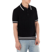 Balmain Men's Tops. Fashion category: T-Shirts & Henleys. SKU: DH1GB066KH02-NOIR/BLANC. Color: Noir/Blanc. Balmain Knitted Wool Polo Shirt. This polo shirt features a virgin wool knitted construction, with a signature 4G motif, stripe detailing, a polo collar, a front button placket, short sleeves, and a straight hem. 100% Virgin Wool. GENERAL Brand Type: Designer Color: Noir/Blanc INFORMATION Brand: Balmain Gender: Mens Model: DH1GB066KH02-NOIR/BLANC DETAILS Category: Tops Apparel Type: T-Shirts & Henleys Material: Wool ADDITIONAL INFO Jomashop Sku: -1GB066KH02NOIRBLANC Department: Clothing