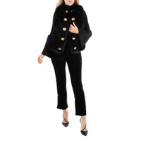Balmain Ladies Noir Flared-Cut Velvet Trousers