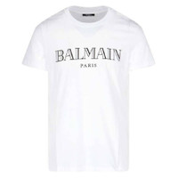Balmain Men's Tops. Fashion category: T-Shirts & Henleys. SKU: UH11601I312-GAC. Color: Gac White/Argent. Balmain Logo Embossed Cotton T Shirt. This shirt features a crewneck, short sleeves, a straight hem, and a black logo print on the front for a clean, modern look. 100% Cotton. Made in Portugal. GENERAL Brand Type: Designer Color: Gac Blanc/Argent INFORMATION Brand: Balmain Gender: Mens Model: UH11601I312-GAC DETAILS Category: Tops Apparel Type: T-Shirts & Henleys Material: Cotton ADDITIONAL INFO Jomashop Sku: -UH11601I312GAC Department: Clothing