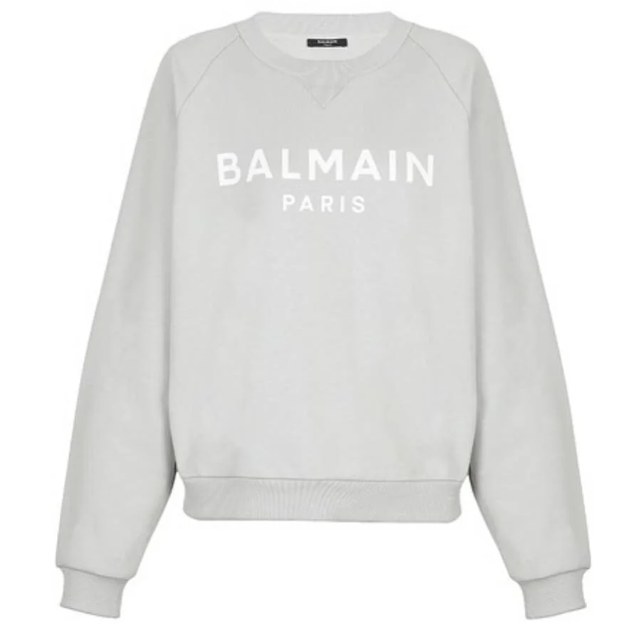Balmain Ladies Tops. Fashion category: Hoodies & Sweatshirts. SKU: XF0JQ001BB02-YDI. Color: Light Grey/White. Balmain Logo Print Eco-Designed Cotton Sweatshirt. This long-sleeved sweatshirt is crafted from soft cotton and features a classic round neck with ribbed trims. Designed with a boxy fit for relaxed comfort, it is finished with a printed logo. 100% Cotton. Made in Portugal. GENERAL Size Info: Small Brand Type: Designer Clothing Size: Ladies Apparel Size: S Color: Light Grey/White INFORMATION Brand: Balmain Gender: Womens Model: XF0JQ001BB02-YDI DETAILS Category: Tops Apparel Type: Hoodies & Sweatshirts Material: Cotton ADDITIONAL INFO UPC Code: 3615883053035 Jomashop Sku: Z-YB4PU Department: Clothing