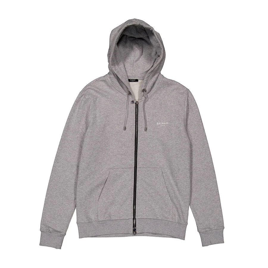 Balmain Men's Tops. Fashion category: Cardigans & Sweaters. SKU: WH1JX000B071-YBL. Color: Ybl Gris Chine Clair/White. Balmain Men's Eco Design Zipped Flock Hoodie. Balmain Men’s Eco Design Zipped Flock Hoodie crafted from premium cotton jersey for a soft, comfortable feel. Designed with a drawstring hood, two-way zip closure, and a split pouch pocket, it’s finished with flocked branding and ribbed trims for a refined, casual look. 100% cotton. Made in Portugal. GENERAL Size Info: Large Brand Type: Designer Clothing Size: Men's Apparel Size: L Color: Ybl Gris Chine Clair/White INFORMATION Brand: Balmain Gender: Mens Model: WH1JX000B071-YBL DETAILS Category: Tops Apparel Type: Cardigans & Sweaters Material: Cotton ADDITIONAL INFO UPC Code: 3615881805605 Jomashop Sku: Z-6S9KQ Department: Clothing