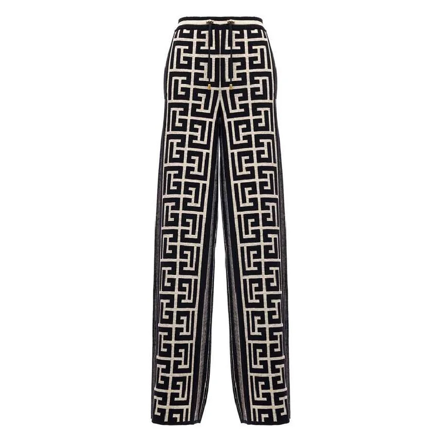 Balmain Ladies Bottoms. Fashion category: Active & Lounge. SKU: XF1OB015KB34-GFE. Color: Ivoire/Black. Balmain Monogram Drawstring Sweatpants. This sweatpant features a Balmain monogram print, side striped detailing, an elasticized waistband with a drawstring, two side welt pockets, and gold-tone accents. 55% Wool, 40% Linen, 5% Polyamide. Made in France. GENERAL Brand Type: Designer Color: Gfe Ivoire/Noir INFORMATION Brand: Balmain Gender: Womens Model: XF1OB015KB34-GFE DETAILS Category: Bottoms Apparel Type: Active & Lounge Material: Linen, Polyamide, Wool ADDITIONAL INFO Jomashop Sku: -XF1OB015KB34GFE Department: Clothing