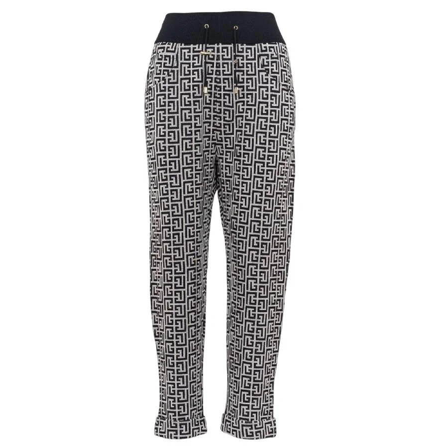 Balmain Ladies Bottoms. Fashion category: Active & Lounge. SKU: WF1OB000J193-GFE. Color: Ivoire/Black. Balmain Monogram Pattern Cotton Trousers. This trouser feature an all-over monogram print, with an archival logo inspired by Pierre Balmain's initials, a straight fit, and a wide elastic waistband for a comfortable fit. 100% Cotton. Made in Italy. GENERAL Brand Type: Designer Color: Ivoire/Black INFORMATION Brand: Balmain Gender: Womens Model: WF1OB000J193-GFE DETAILS Category: Bottoms Apparel Type: Active & Lounge Material: Cotton ADDITIONAL INFO Jomashop Sku: -WF1OB000J193GFE Department: Clothing