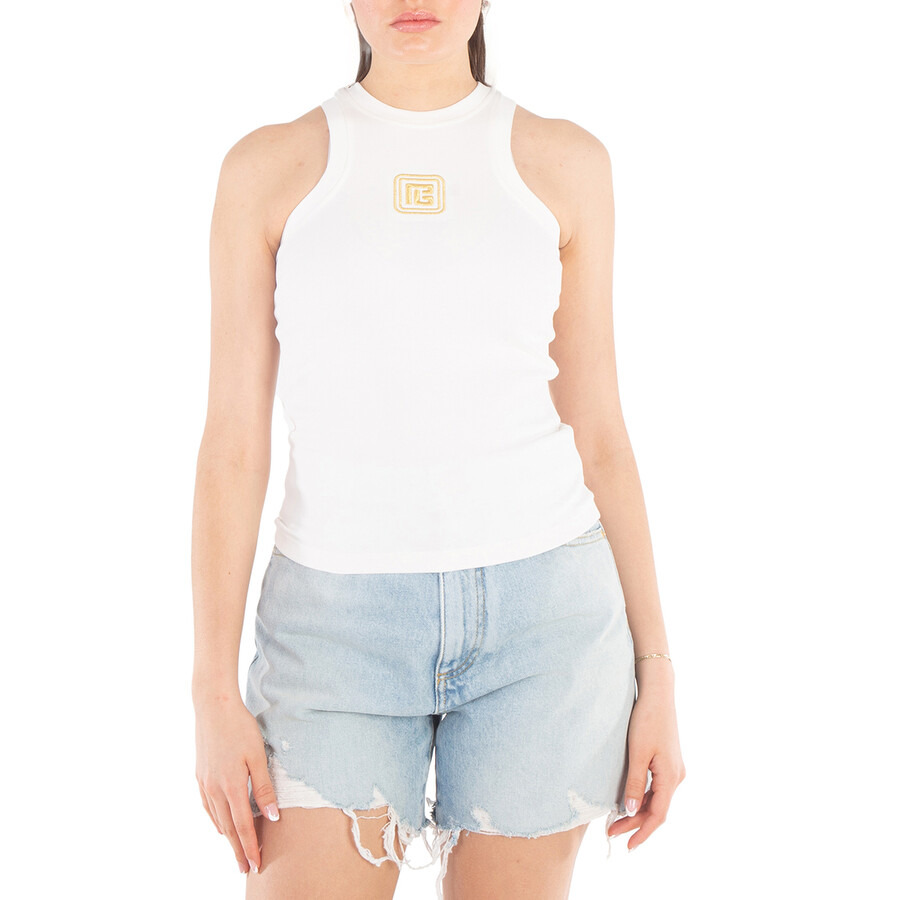 Balmain Ladies Tops. Fashion category: Vests. SKU: CF1EB045BC49-CREME/OR. Color: White. Balmain Retro Logo-Embroidered Tank Top. Made from soft cotton, this retro-inspired tank top features a classic crewneck, a sleeveless design, and a straight hem. It has a pullover style for easy wear and is finished with an embroidered logo at the front for added detail. Material: Cotton/Modal/Elastane. Made in Portugal. GENERAL Color: White INFORMATION Brand: Balmain Gender: Womens Model: CF1EB045BC49-CREME/OR DETAILS Category: Tops Apparel Type: Vests ADDITIONAL INFO Jomashop Sku: -CF1EB045BC49CREMEOR Department: Clothing