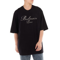 Balmain Men's Tops. Fashion category: T-Shirts & Henleys. SKU: CH1EH015PC19-EJP NOIR/VIEIL ARGENT. Color: Black. Balmain Signature Embroidered T-Shirt. This cotton jersey T-shirt features a relaxed fit, round neck, drop shoulders, short sleeves, and a straight hem. It is adorned with bead- and crystal-embroidered Balmain Signature logo. Cotton 100% GENERAL Color: Black INFORMATION Brand: Balmain Gender: Mens Model: CH1EH015PC19-EJP NOIR/VIEIL ARGENT DETAILS Category: Tops Apparel Type: T-Shirts & Henleys Material: Cotton ADDITIONAL INFO Jomashop Sku: -9EJPNOIRVIEILARGENT Department: Clothing