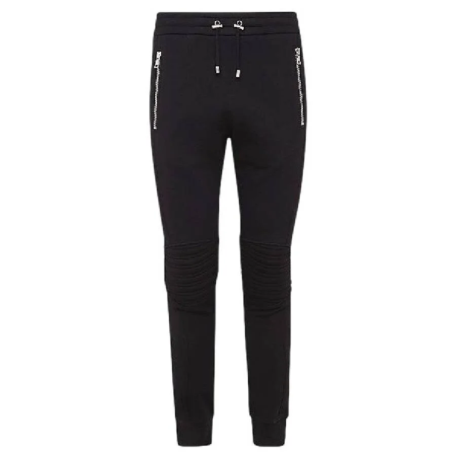 Balmain Men's Bottoms. Fashion category: Active & Lounge. SKU: XH1OB030BB35-0PA. Color: Black. Balmain Slim Fit Zip Pocket Sweatpants. This sweatpant features a mid-rise fit, a tonal drawstring at the elasticized waistband, four-pocket styling, quilted trim at the knees, rib-knit cuffs, a tonal embossed logo at the back pocket, and silver-tone hardware. 100% Cotton. Made in Portugal. GENERAL Brand Type: Designer Color: Black INFORMATION Brand: Balmain Gender: Mens Model: XH1OB030BB35-0PA DETAILS Category: Bottoms Apparel Type: Active & Lounge Material: Cotton ADDITIONAL INFO Jomashop Sku: -XH1OB030BB350PA Department: Clothing