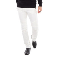 Balmain Men's Bottoms. Fashion category: Jeans & Denim. SKU: DH1MG009DE65-BLANC. Color: Blanc. Balmain Slim Leg Biker Jeans. These biker jeans feature ribbed knees, 5 classic pockets, and 2 visible zip pockets with Balmain Paris-engraved sliders. They have a fly with a zip and press-stud fastening under a placket, as well as visible zips at the ankles with Balmain Paris-engraved sliders. The jeans are detailed with engraved rivets, a waistband with belt loops, and a triple belt loop at the back. Finished with a woven label featuring the vintage Balmain logo and silver hardware. Made in Italy. GENERAL Brand Type: Designer Color: Blanc INFORMATION Brand: Balmain Gender: Mens Model: DH1MG009DE65-BLANC DETAILS Category: Bottoms Apparel Type: Jeans & Denim Material: Cotton Blend ADDITIONAL INFO Jomashop Sku: -DH1MG009DE65BLANC Department: Clothing