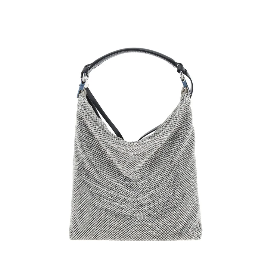 Benedetta Bruzziches Ladies Shoulder Bag. SKU: 24097019. Color: Silver. Benedetta Bruzziches Bella Ciao Handbag. Bella ciao handbag by benedetta bruzziches, stiff metal handle, top zipper opening, soft design, silk satin lining, all-over pattern with all-over applique shiny crystals, removable double chain shoulder strap. Composition: 65% % Alluminio, 35% % Fabric. GENERAL Color: Silver INFORMATION Brand: Benedetta Bruzziches Gender: Womens Model: 24097019 ADDITIONAL INFO UPC Code: 8056249364252 Jomashop Sku: Z-JD8Z3 Department: Bags Category: Shoulder Bag