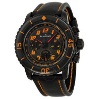 Black (dlc coated) stainless steel case with a black leather strap. Uni-directional rotating coin edge black (dlc coated) stainless steel bezel. Carbon fiber dial with black hands and Arabic numeral hour markers. Minute markers. tachymeter around the outer rim. Dial Type: Analog. Luminescent hands and markers. Date display at the 6 o'clock position. Chronograph - three sub-dials displaying: 60 second, 30 minute and 12 hour. Blancpain Calibre F185 Automatic movement, based upon Frederic Piguet 1185, containing 37 Jewels, composed of 308 parts, bitting at 21600 vph, and has a power reserve of approximately 40 hours. Scratch resistant sapphire crystal. Screw down crown. Orange skeleton case back. Round case shape, case size: 45 mm, case thickness: 16 mm. Deployment with push button release clasp. Water resistant at 100 meters / 330 feet. Functions: chronograph, column wheel, flyback, date, hour, minute, small second. Fifty Fathoms Series. Luxury watch style. Watch label: Swiss Made. Item Variations: 5785F 11D03 63, 5785F.11D03.63, 5785F11D0363. Blancpain 50 Fathoms Speed Command Automatic Chronograph Men's Watch 5785F-11D03-63. GENERAL Color: Black / Orange / Skeleton CASE Case Size: 45 Case Thickness: 16 mm Case Material: Stainless Steel Case Shape: Round Case Back: Orange Skeleton BAND Band Material: Leather Band Type: Strap Band Color: Black Clasp: Deployment with Push Button Release DIAL Dial Color: Carbon fiber Type: Analog Crystal: Scratch Resistant Sapphire Hands: Black Dial Markers: Arabic Numeral Second Markers: Minute Markers. Tachymeter around the outer rim Sub Dials: Three - 60 Second, 30 Minute and 12 Hour Luminiscence: Hands and Markers Bezel: Uni-directional Rotating Coin Edge Bezel Color: Black (DLC coated) Bezel Material: Stainless Steel Crown: Screw Down INFORMATION Brand: Blancpain Series: Fifty Fathoms Collection Name: Fifty Fathoms Gender: Mens Model: 5785F-11D03-63 Watch Label: Swiss Made Movement: Automatic Engine: Blancpain Calibre F185 Power Reserve: 40 hours FEATURES Water Resistance: 100 meters / 330 feet Calendar: Date display at the 6 o'clock position Functions: Chronograph, Column Wheel, FlyBack, Date, Hour, Minute, Small Second Watch Features: Analog, Flyback, Leather, Stainless Steel, Chronograph ADDITIONAL INFO Watch Style: Luxury Warranty: 2 Year Jomashop Warranty UPC Code: 845960047258 Jomashop Sku: BLANC5785F-11D03-63 Item Variation: 5785F 11D03 63, 5785F.11D03.63, 5785F11D0363 Department: Watches Category: Watches