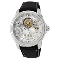 Silver-tone platinum case with a black leather strap. Fixed silver-tone platinum bezel. Silver skeleton dial with silver-tone skeleton hands and index hour markers. Minute markers around the outer rim. Dial Type: Analog. Luminescent hands and markers. Date display at the 9 o'clock position. Two displays showing: date and power reserve. Blancpain calibre 225 automatic movement, containing 36 Jewels, composed of 263 parts, bitting at 21600 vph, and has a power reserve of approximately 120 hours. Scratch resistant sapphire crystal. Screw down crown. Transparent case back. Round case shape. Case size: 43.5 mm. Case thickness: 14 mm. Fold over clasp. Water resistant at 100 meters / 330 feet. Functions: date, hour, minute, power reserve indicator, flying carrousel. Additional Info: limited to 288. Luxury watch style. Watch label: Swiss Made. Blancpain Le Brassus Platinum One Minute Flying Carrousel Men's Watch 2253-4034-53B. GENERAL Box Type: Original Box CASE Case Size: 43 Case Thickness: 14 mm Case Material: Platinum Case Shape: Round Case Back: Transparent BAND Band Material: Leather Band Type: Strap Band Color: Black Clasp: Fold Over DIAL Dial Color: Silver Skeleton Type: Analog Crystal: Scratch Resistant Sapphire Hands: Silver-tone Skeleton Dial Markers: Index Second Markers: Minute Markers around the outer rim Sub Dials: Two - Date and Power Reserve Indicator Luminiscence: Hands and Markers Bezel: Fixed Bezel Color: Silver-tone Bezel Material: Platinum Crown: Screw Down INFORMATION Brand: Blancpain Series: Le Brassus Collection Name: Le Brassus Gender: Mens Model: 2253-4034-53B Watch Label: Swiss Made Movement: Automatic Engine: Blancpain Calibre 225 Power Reserve: 120 hours FEATURES Water Resistance: 100 meters / 330 feet Calendar: Date display at the 9 o'clock position Functions: Date, Hour, Minute, Power Reserve Indicator, Flying Carrousel Watch Features: Analog, Power Reserve Indicator, Platinum, Leather ADDITIONAL INFO Watch Style: Luxury Warranty: 2 Year Jomashop Warranty UPC Code: 842047131343 Additional Info: Limited to 288 Jomashop Sku: BLANC2253-4034-53B Department: Watches Category: Watches