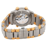 Silver-tone titanium case with a two-tone (silver-tone and rose gold-tone) titanium and 18kt rose gold bracelet. Fixed silver-tone titanium bezel. Black dial with rose gold-tone hands and index- Arabic numerals hour markers. Dial Type: Analog. Luminescent hands and markers. Date display between 4 and 5 o'clock position. Five sub-dials displaying: 24 hour, 12 hour/60 second, power reserve indicator, alarm. Blancpain Calibre 1241 Automatic movement, containing 38 Jewels, composed of 405 parts, and has a power reserve of approximately 40 hours. Scratch resistant sapphire crystal. Skeleton transparent exhibition see through case back. Round case shape, case size: 40 mm, case thickness: 13.3 mm. Water resistant at 100 meters / 330 feet. Functions: alarm, date, GMT, two time zone, hours, minutes, seconds, power reserve indicator. Leman Reveil Gmt Series. Luxury watch style. Watch label: Swiss Made. Blancpain Leman Reveil GMT Alarm GMT Automatic Black Dial Men's Watch 2041-12A3-098. CASE Case Size: 40 Case Thickness: 13.3 mm Case Material: Titanium Case Shape: Round Case Back: Skeleton Transparent Exhibition See Through BAND Band Material: Titanium and 18kt Rose Gold Band Type: Bracelet Band Color: Two-tone (Silver-tone and Rose Gold-tone) DIAL Dial Color: Black Type: Analog Crystal: Scratch Resistant Sapphire Hands: Rose Gold-tone Dial Markers: Index- Arabic Numerals Sub Dials: Five - 24 Hour, 12 Hour/60 Second, Power Reserve Indicator, Alarm Luminiscence: Hands and Markers Bezel: Fixed Bezel Color: Silver-tone Bezel Material: Titanium INFORMATION Brand: Blancpain Series: Leman Reveil Gmt Collection Name: Leman Reveil GMT Gender: Mens Model: 2041-12A3-098 Watch Label: Swiss Made Movement: Automatic Engine: Blancpain Calibre 1241 Power Reserve: 40 hours FEATURES Water Resistance: 100 meters / 330 feet Calendar: Date display between 4 and 5 o'clock position Functions: Alarm, Date, GMT, Two Time Zone, Hours, Minutes, Seconds, Power Reserve Indicator Watch Features: Analog, GMT, Power Reserve Indicator, Gold, Titanium, Alarm, Time Zone ADDITIONAL INFO Watch Style: Luxury Warranty: 2 Year Jomashop Warranty Jomashop Sku: BLANC2041-12A3-098 Department: Watches