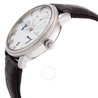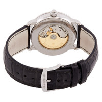 Silver-tone stainless steel case with a black alligator leather strap. Fixed silver-tone stainless steel bezel. White dial with silver-tone hands and Roman numeral hour markers. Dial Type: Analog. Date display at the 6 o'clock position. Three sub-dials displaying: second time zone 12 hour/60 minute, day/night indicator, power reserve indicator. Blancpain Calibre 5254DF Automatic movement, containing 28 Jewels, composed of 321 parts, bitting at 28800 vph, and has a power reserve of approximately 72 hours. Scratch resistant sapphire crystal. Pull / push crown. Transparent see through case back. Round case shape, case size: 40 mm, case thickness: 11.2 mm. Band width: 22 mm. Folding clasp. Water resistant at 30 meters / 100 feet. Functions: date, hour, minute, second, power reserve indicator, day/night indicator. Villeret Series. Luxury watch style. Watch label: Swiss Made. Blancpain Villeret Demi-Fuseau Horaire Automatic White Dial Watch 6660-1127-55B. CASE Case Size: 40 Case Thickness: 11.2 mm Case Material: Stainless Steel Case Shape: Round Case Back: Transparent See Through BAND Band Material: Alligator Leather Band Type: Strap Band Color: Black Band Width: 22 mm Clasp: Folding DIAL Dial Color: White Type: Analog Crystal: Scratch Resistant Sapphire Hands: Silver-tone Dial Markers: Roman Numeral Sub Dials: Three - Second Time Zone 12 Hour/60 minute, Day/Night Indicator, Power Reserve Indicator Bezel: Fixed Bezel Color: Silver-tone Bezel Material: Stainless Steel Crown: Pull / Push INFORMATION Brand: Blancpain Series: Villeret Collection Name: Villeret Gender: Mens Model: 6660-1127-55B Watch Label: Swiss Made Movement: Automatic Engine: Blancpain Calibre 5254DF Power Reserve: 72 hours FEATURES Water Resistance: 30 meters / 100 feet Calendar: Date display at the 6 o'clock position Functions: Date, Hour, Minute, Second, Power Reserve Indicator, Day/Night Indicator Watch Features: Alligator Leather, Analog, Day/Night Indicator, Power Reserve Indicator, Leather, Stainless Steel, Time Zone ADDITIONAL INFO Watch Style: Luxury Warranty: 2 Year Jomashop Warranty Jomashop Sku: BLANC6660-1127-55B Department: Watches