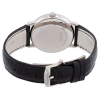 18kt white gold case with a black leather strap. Fixed 18kt white gold bezel. Silver dial with silver-tone hands and Roman numeral hour markers. Dial Type: Analog. Date display at the 3 o'clock position. Blancpain Calibre 1150 Automatic movement, containing 28 Jewels, composed of 210 parts, bitting at 21600 vph, and has a power reserve of approximately 100 hours. Scratch resistant sapphire crystal. Pull / push crown. Solid case back. Round case shape, case size: 38 mm. Water resistant at 30 meters / 100 feet. Functions: date, hour, minute, second. Villeret Ultra Slim Series. Luxury watch style. Watch label: Swiss Made. Blancpain Villeret Ultra Slim Automatic Ladies Watch 6223-1542-55B. CASE Case Size: 38 Case Material: 18kt White Gold Case Shape: Round Case Back: Solid BAND Band Material: Leather Band Type: Strap Band Color: Black DIAL Dial Color: Silver Type: Analog Crystal: Scratch Resistant Sapphire Hands: Silver-tone Dial Markers: Roman Numeral Bezel: Fixed Bezel Material: 18kt White Gold Crown: Pull / Push INFORMATION Brand: Blancpain Series: Villeret Ultra Slim Collection Name: Villeret Ultra Slim Gender: Womens Model: 6223-1542-55B Watch Label: Swiss Made Movement: Automatic Engine: Blancpain Calibre 1150 Power Reserve: 100 hours FEATURES Water Resistance: 30 meters / 100 feet Calendar: Date display at the 3 o'clock position Functions: Date, Hour, Minute, Second Watch Features: Analog, Gold, Leather ADDITIONAL INFO Watch Style: Luxury Warranty: 2 Year Jomashop Warranty Jomashop Sku: BLANC6223-1542-55B Department: Watches Category: Watches